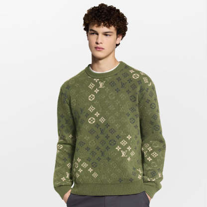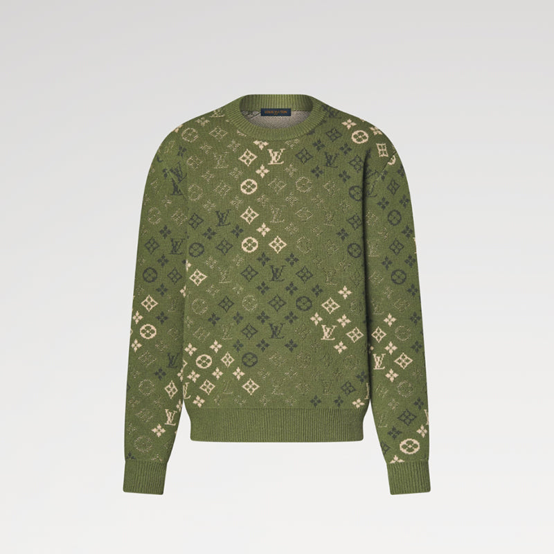 アーシーなグリーンの色合いで仕上げた、ロングスリーブのプルオーバー。カモフラージュ・モチーフを想起させる、グラフィカルなモノグラム・サープラス ジャカードを全面にあしらいました。カーキをベースに、斑点状のグリーンのシグネチャーが、柔らかなウール&カシミヤ混紡素材を使用したニットに美しく織り込まれています。あらゆる冬の装いにレイヤードしやすい快適な着心地のアイテム。