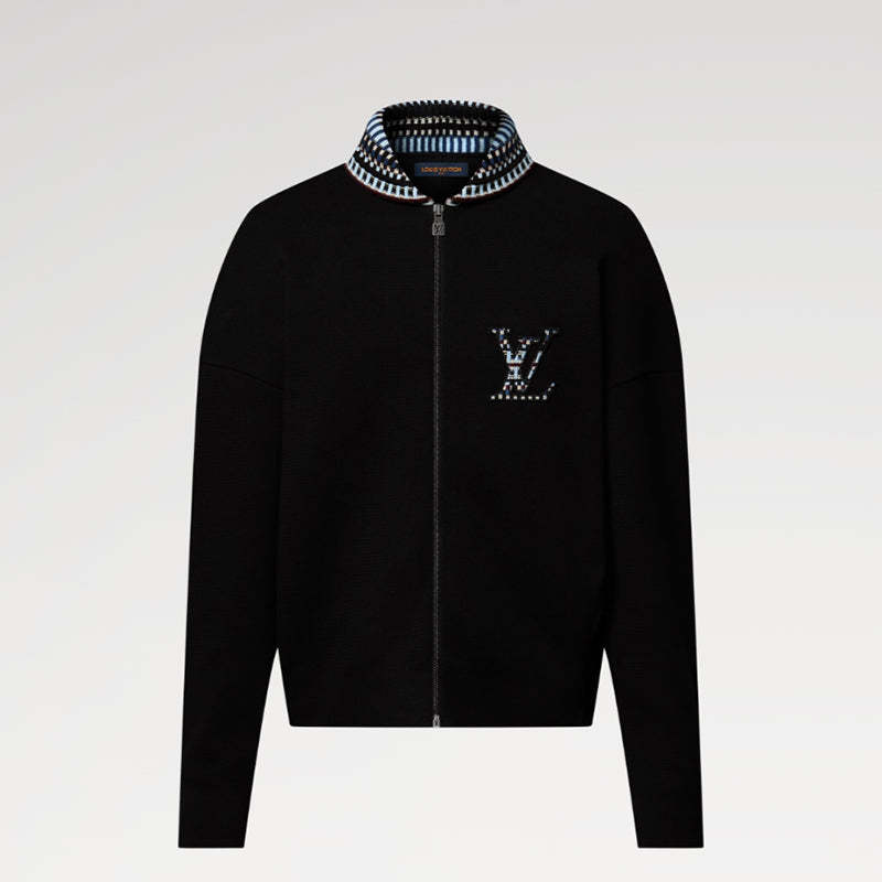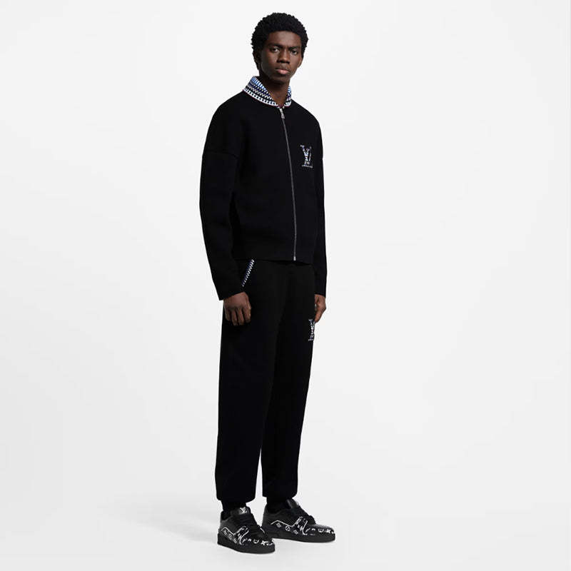 • このボンバージャケットは、軽量コットンニット素材で仕立てられ、ジッパー付きのシルエットとクロシェ編み風の折り返しリブカラーが特徴です。胸元のLV刺繍パッチは鮮やかなチェック柄を引き立て、季節の変わり目にも最適です。お揃いのパンツと合わせれば、リラックスしたエレガントなルックが完成。快適なフライトに最適です。