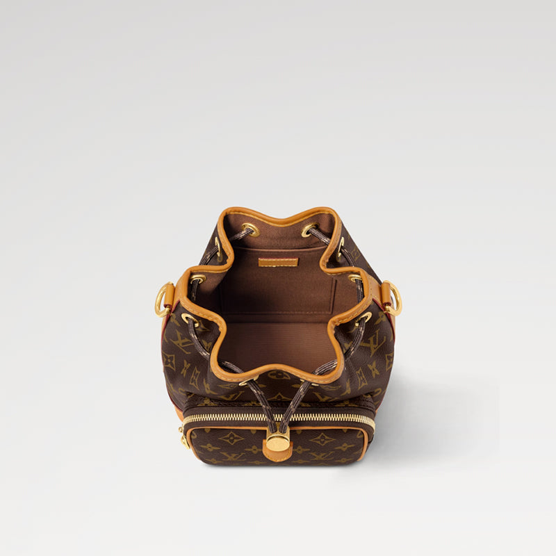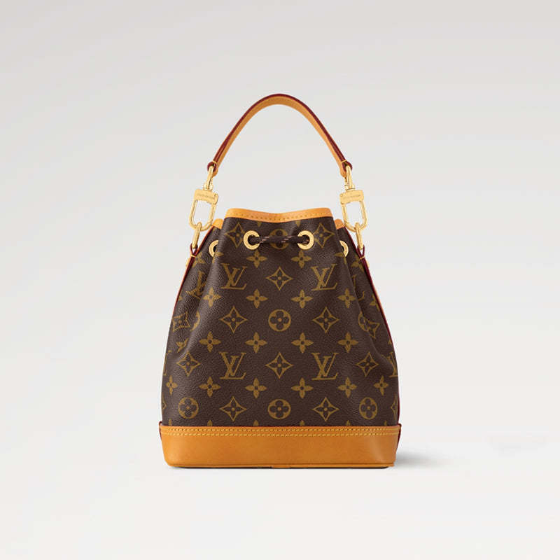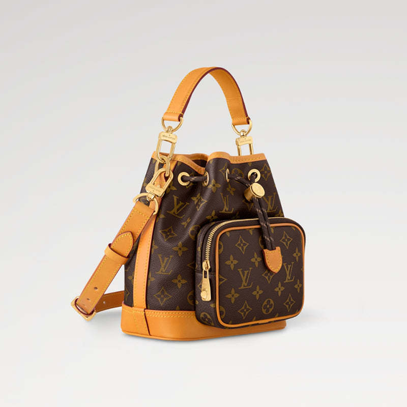 モノグラム・キャンバスに、アンティーク調レザーのトリミングを施した「ノエ・カーゴ」。シャンパンボトルを持ち運ぶ目的で1932年に考案されたルイ・ヴィトンのバケットバッグ「ノエ」のオリジナルモデルに流れる本質を受け継いだデザインです。広々としたフロントポケットと精緻に仕上げたディテールを備えた一品は、現代のニーズを満たしながらメゾンの歴史にオマージュを捧げています。取外し可能なトップハンドルとショルダーストラップでさまざまな持ち方を楽しめるアイテム。