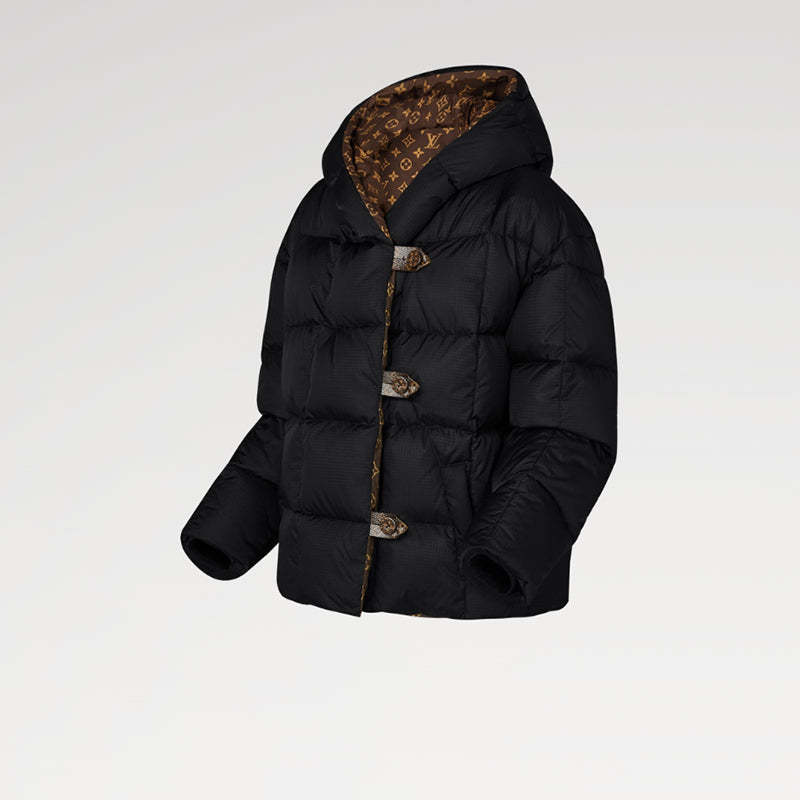 2021春夏コレクションのアイコニックなピローブーツから着想を得た、シックでスポーティなロングスリーブのダウンジャケット。リップストップ加工を施したナイロンにさらにキルティング加工を施し、ゆったりしたフードの内側にはモノグラム・パターンのライニング、フロントには同系色のモノグラム・キャンバスの留め具をあしらいました。天然フェザーのフィリングが叶える快適な着心地と、防寒性に優れた伸縮性のあるカフも魅力です。