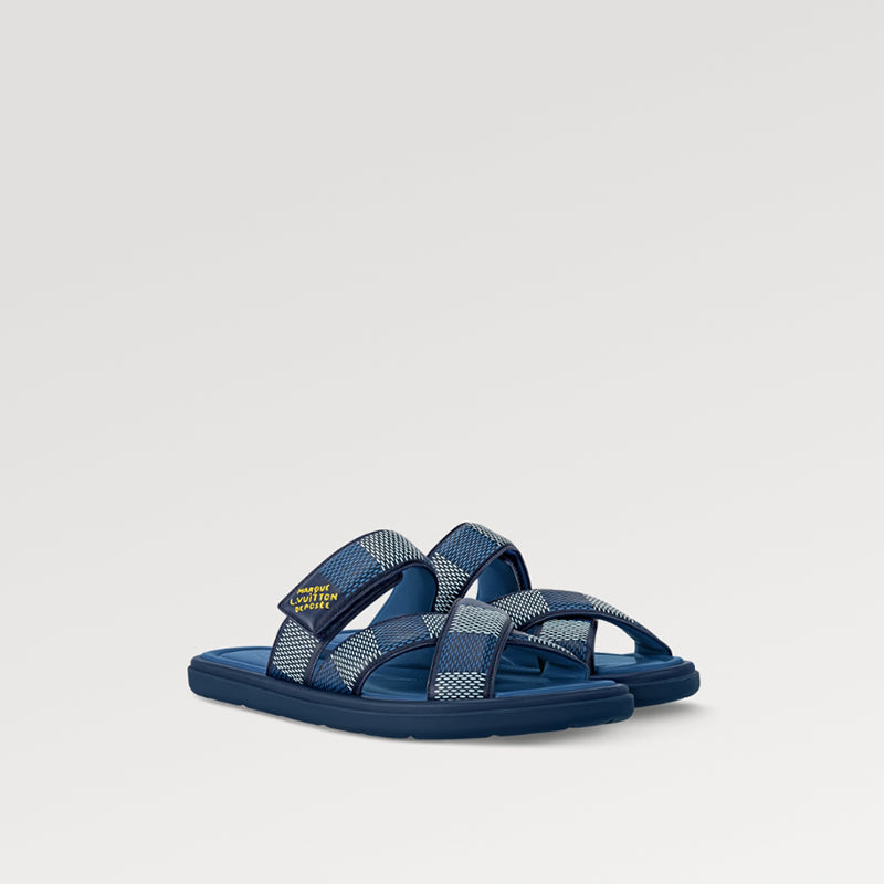 LV ヴェニス スライドは、2024 年プレフォール コレクションのもので、牛革にクラシックなダミエ パターンが施されています。クロスオーバーのアッパーがリラックス感を演出し、調節可能なベルクロ レースにはダミエ キャンバスに由来する Marque L. Vuitton Déposée のロゴがあしらわれています。クッション性のあるインソールと軽量のラバー アウトソールが全体を完成させます。